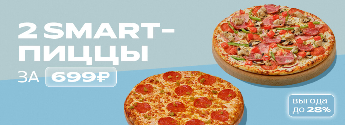Выбери две разные smart-пиццы и закажи их всего за 699 рублей.